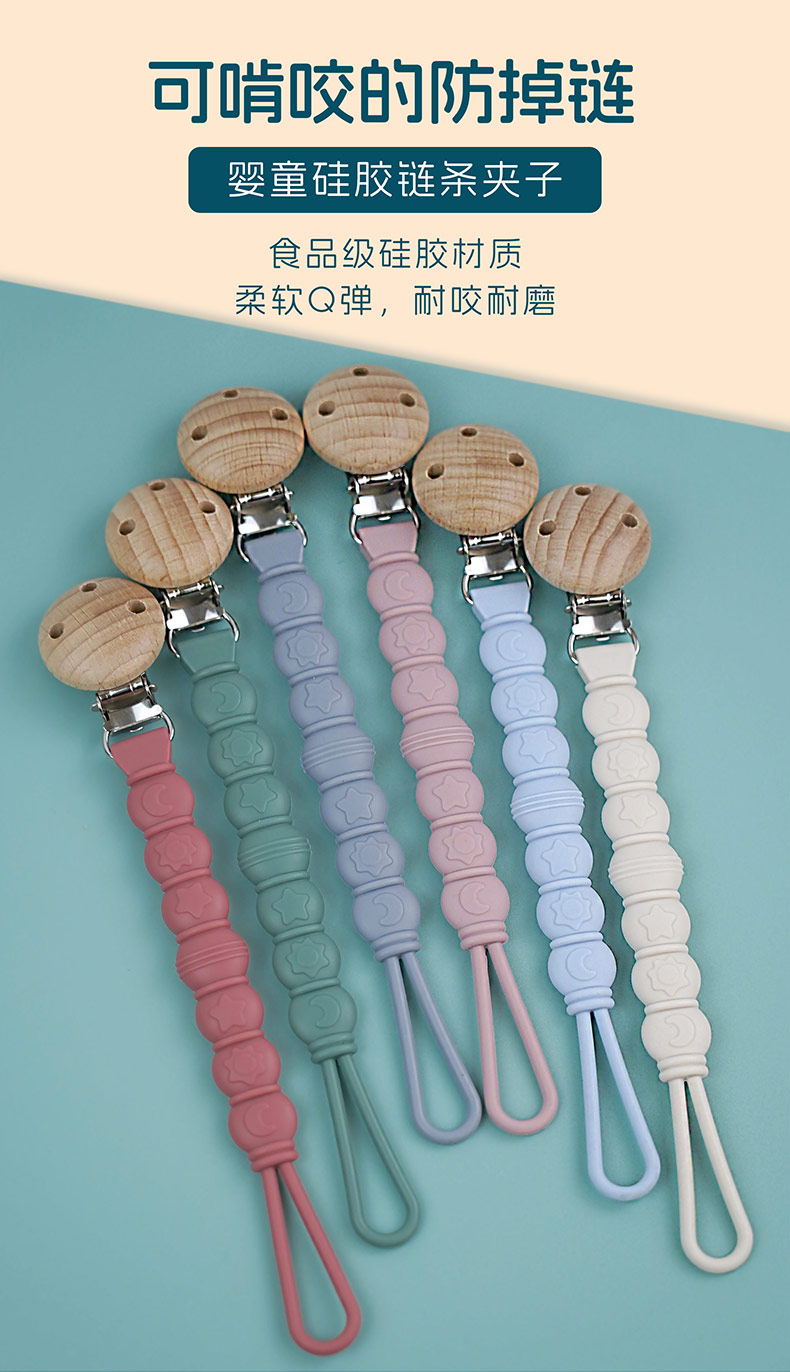 您的位置:首頁 > 產(chǎn)品中心 > 硅膠嬰童用品 > 跨境安撫寶寶牙膠 防掉鏈硅膠奶嘴鏈 嬰兒食品級(jí)可水煮防掉鏈牙膠