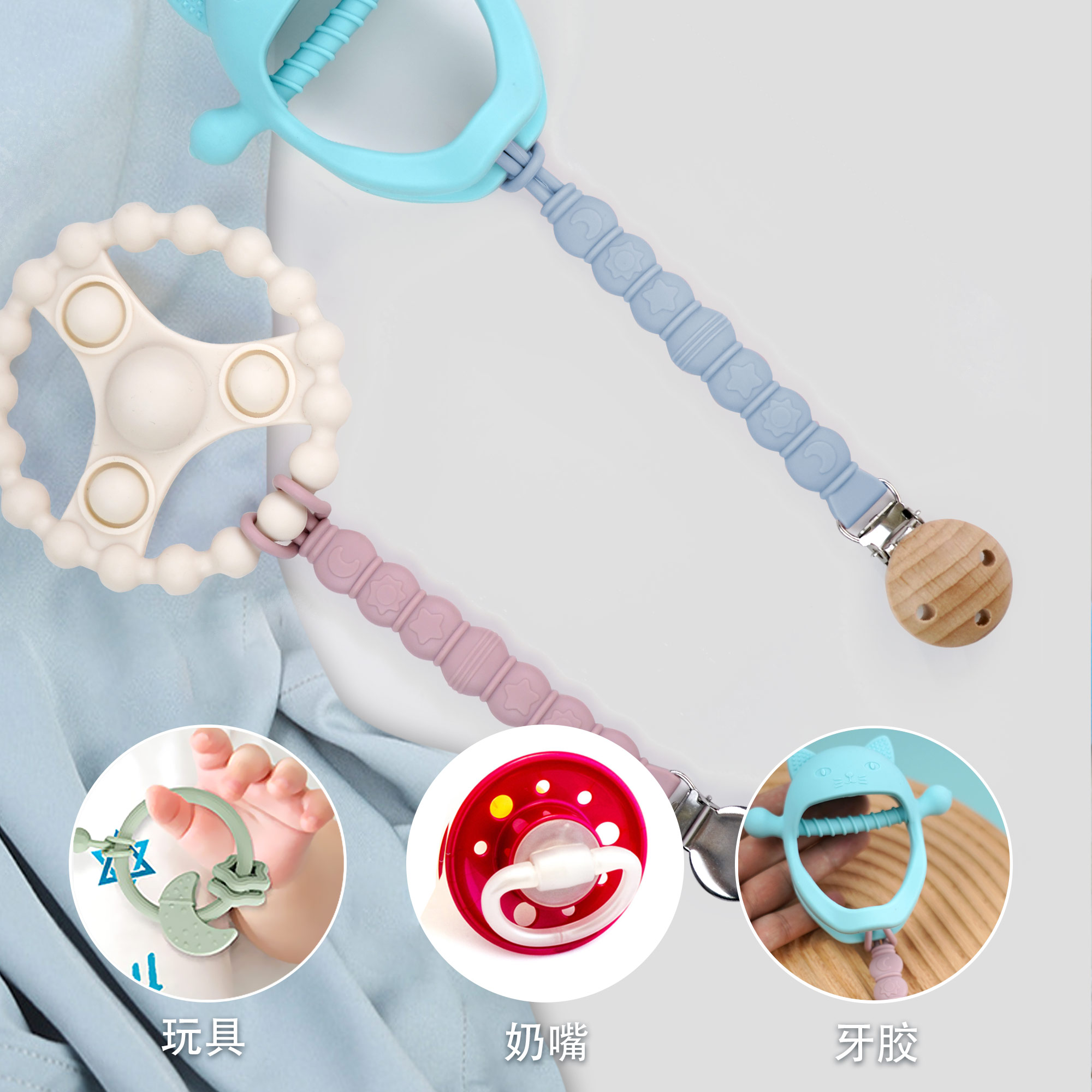 用途:奶嘴防掉,牙膠防掉