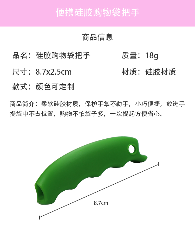 產(chǎn)品名稱硅膠購物袋提手質(zhì)量18g